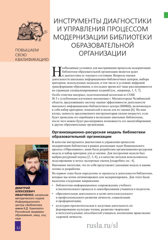 Ivanchenko Instrumenty Diagnostiki I Upravlenia Protsessom Modernizatsii Biblioteki Obrazovatelnoy Organizatsii